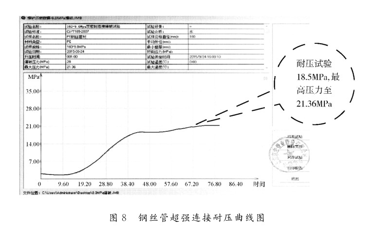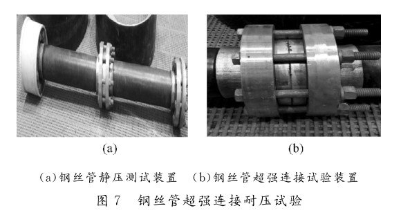 (2)根據對鋼絲管超強連接實驗結果表(biǎo)明,將鋼絲管連接端部的鋼絲固定,致使(shǐ)鋼絲管在承壓時不被抽動,有效地解決(jué)了鋼絲管材中鋼絲的(de)連接的問題;經(jīng)過耐(nài)壓試驗達到(dào)21.36MPa,表明(míng)鋼絲管(guǎn)這(zhè)種超強連接技(jì)術是可行的;