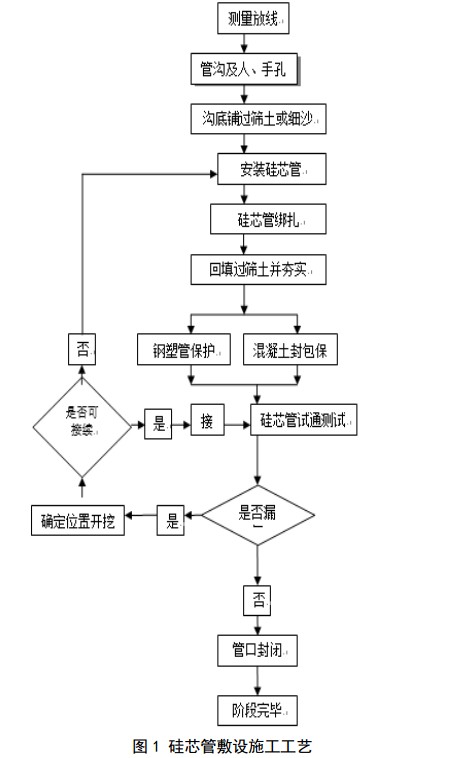 (1)矽芯管敷設前應檢查矽(guī)芯管(guǎn)密封性是否良(liáng)好,防止有水或沙土進入管內;